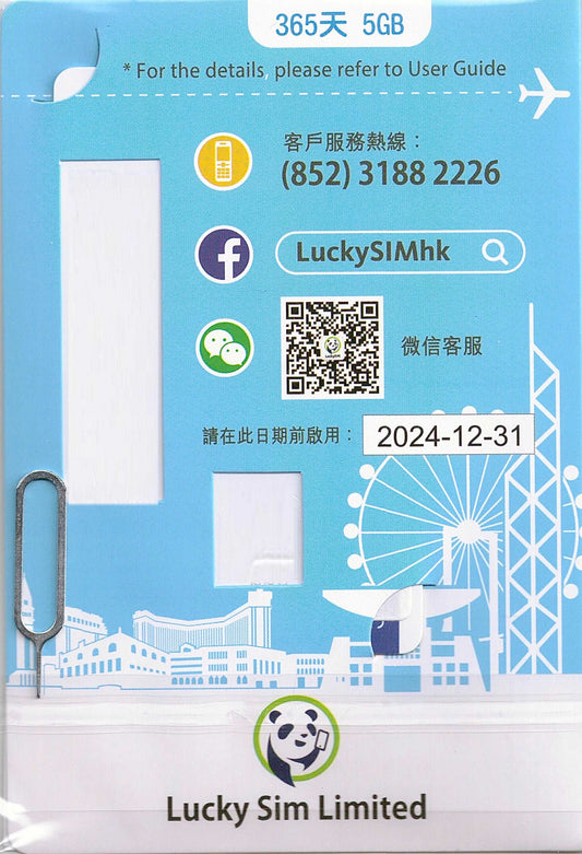 Lucky Sim 【香港】 5GB 本地數據卡 365日 年卡 4G VoLTE (購買時可選擇eSim)