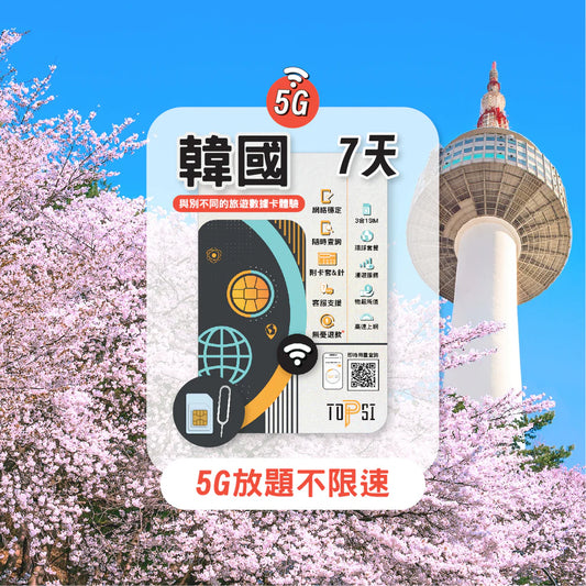 Topsi【南韓】5G/4G 5/7/8/10/15日 數據任用 無限放題 上網卡